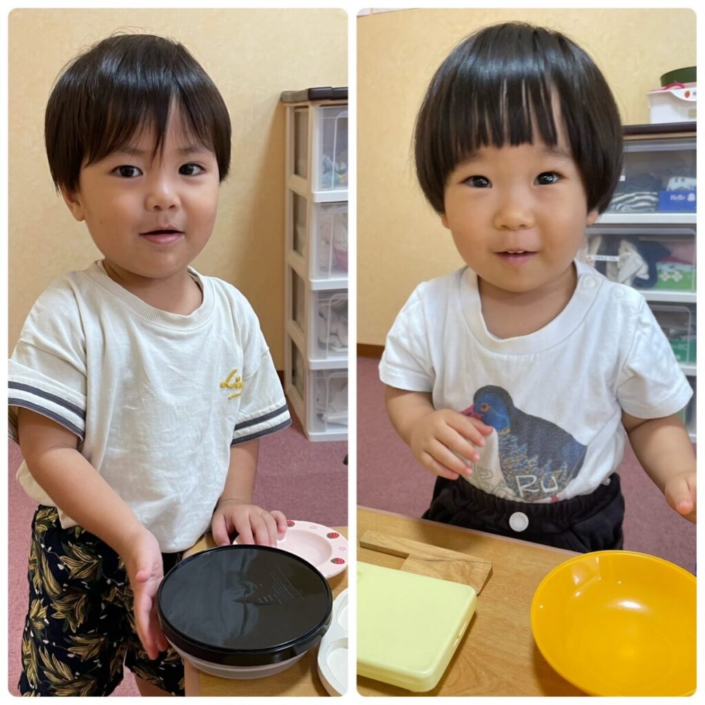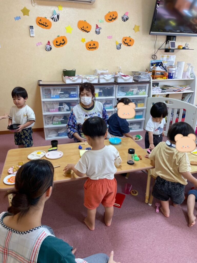 お部屋でおままごとをして