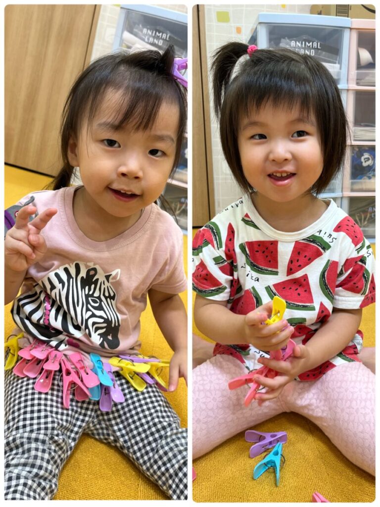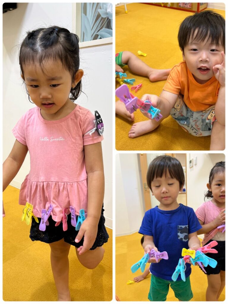 高蔵寺園 2025年10月09日 今日のいちごぐみ🍓 今日のいちごぐみは 盛りだくさん 洗濯バサミで遊んだり ↑みんながつけてというので(笑) みんなで月刊絵本を読んだり このあと、ボタンかけも して遊びました😊