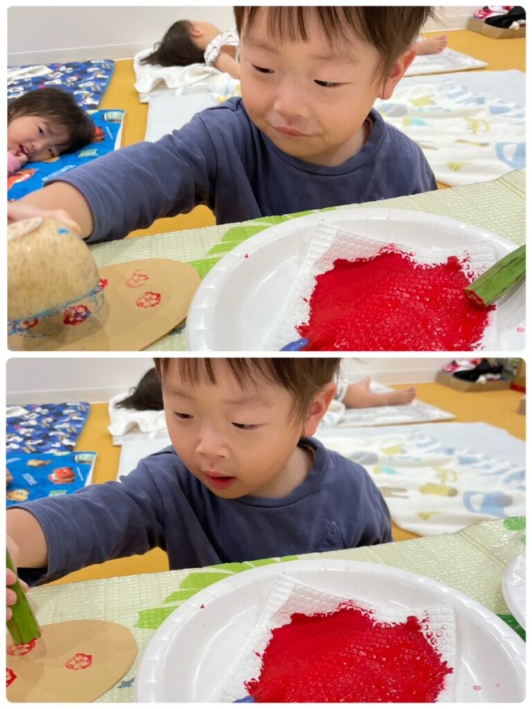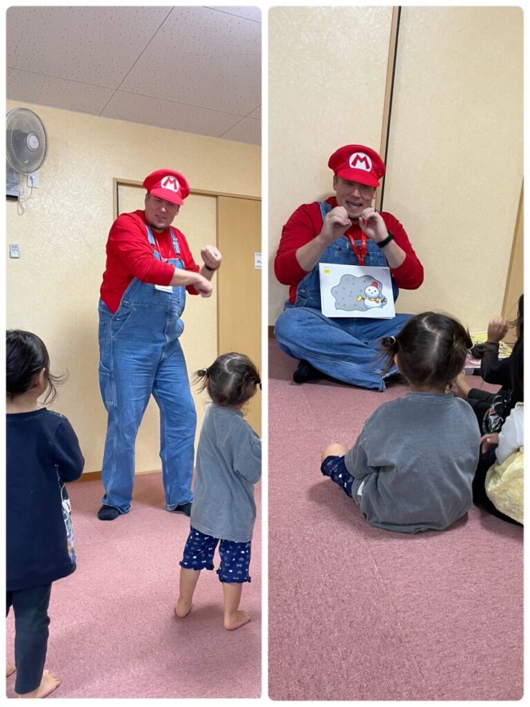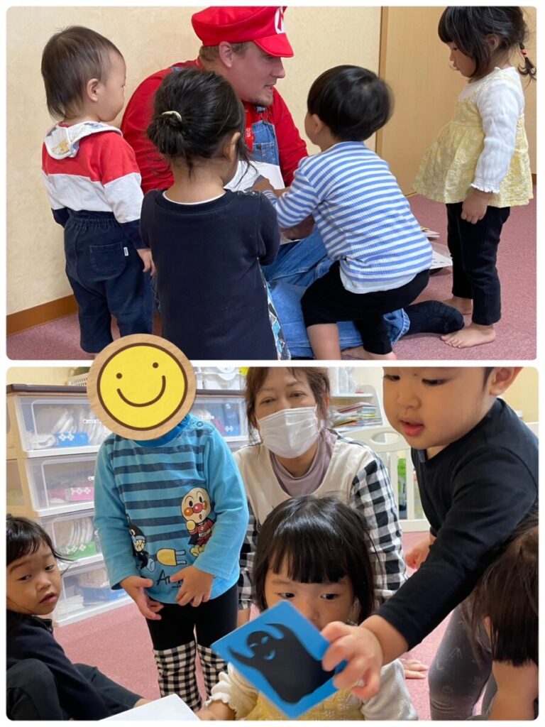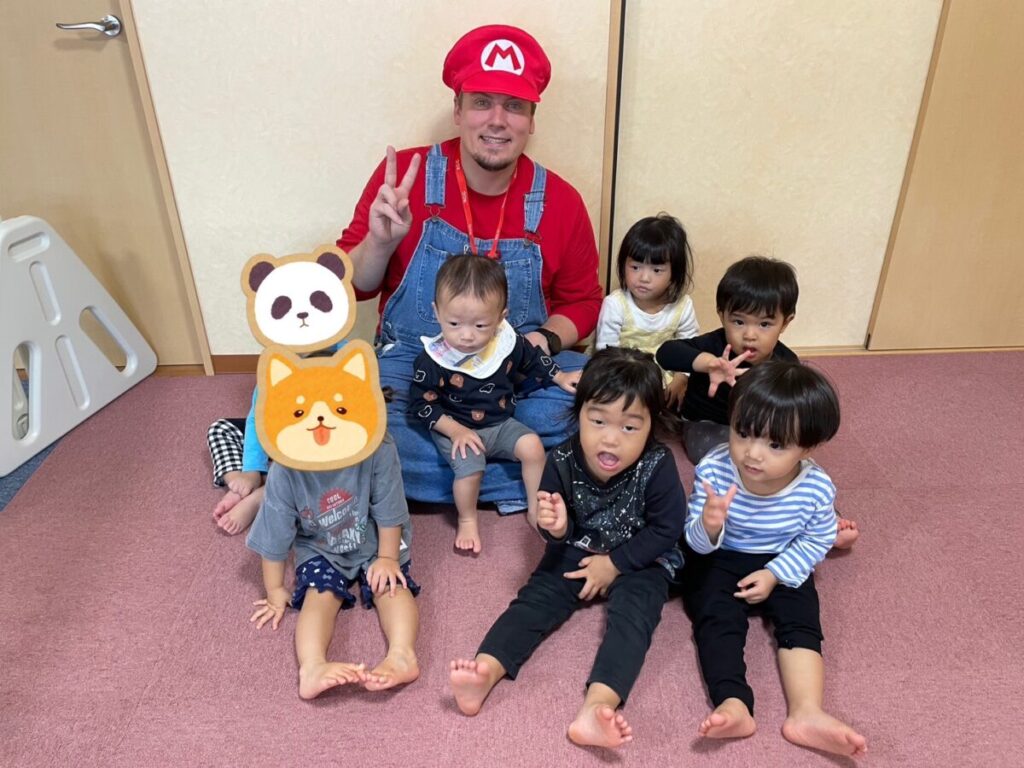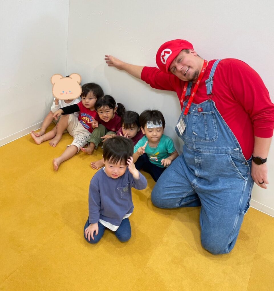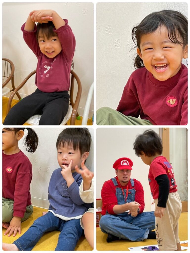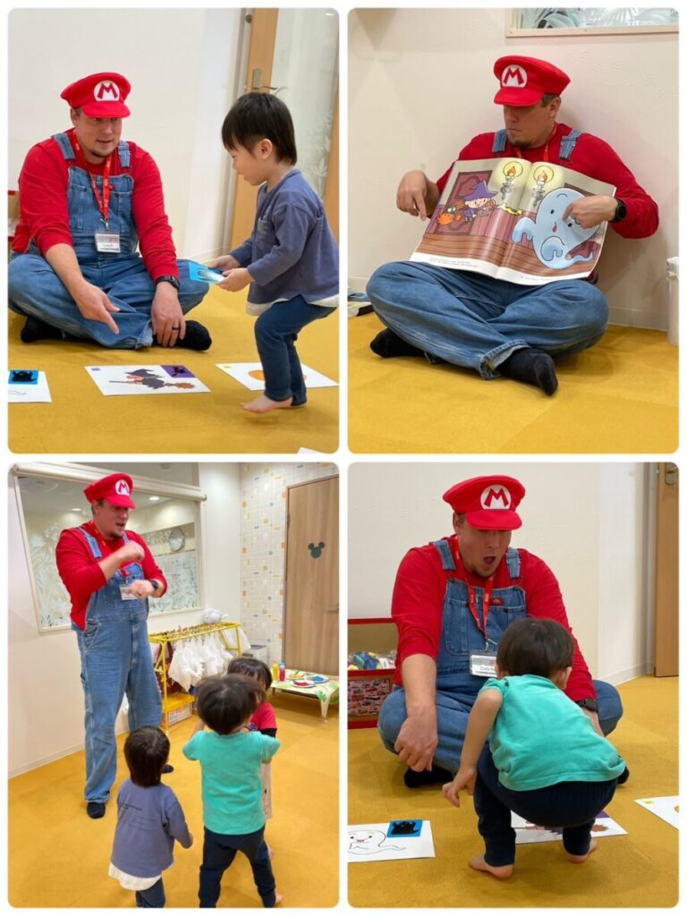 高蔵寺園 2025年10月24日 ECC 英語教室 & おまけ 今日はハロウィーン直前のECC!🎃👻 ということで、 コーディ先生は、マリオになって登場です😁 ももぐみさん楽しそうです😊 最後にマリオ先生と 「ハイ!ポ~ズ!」 いちごぐみさん マリオ先生に大興奮です😄 いちごぐみさんも マリオ先生と「ハイ!ポ~ズ!」 🌟おまけ🌟 いちごぐみさん お野菜スタンプ中! これから順番に製作していきます🍄