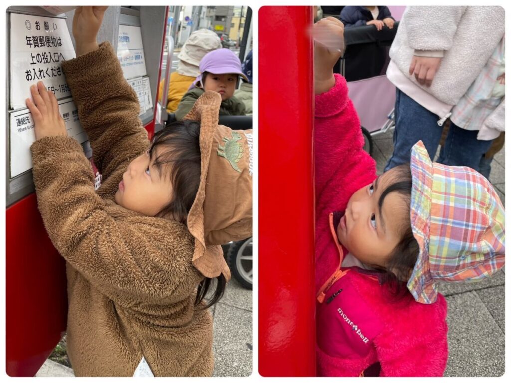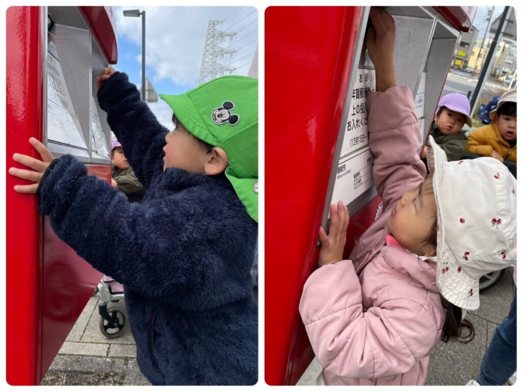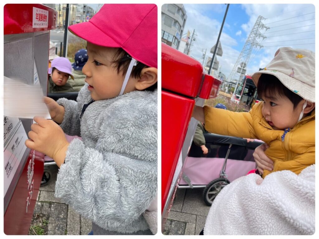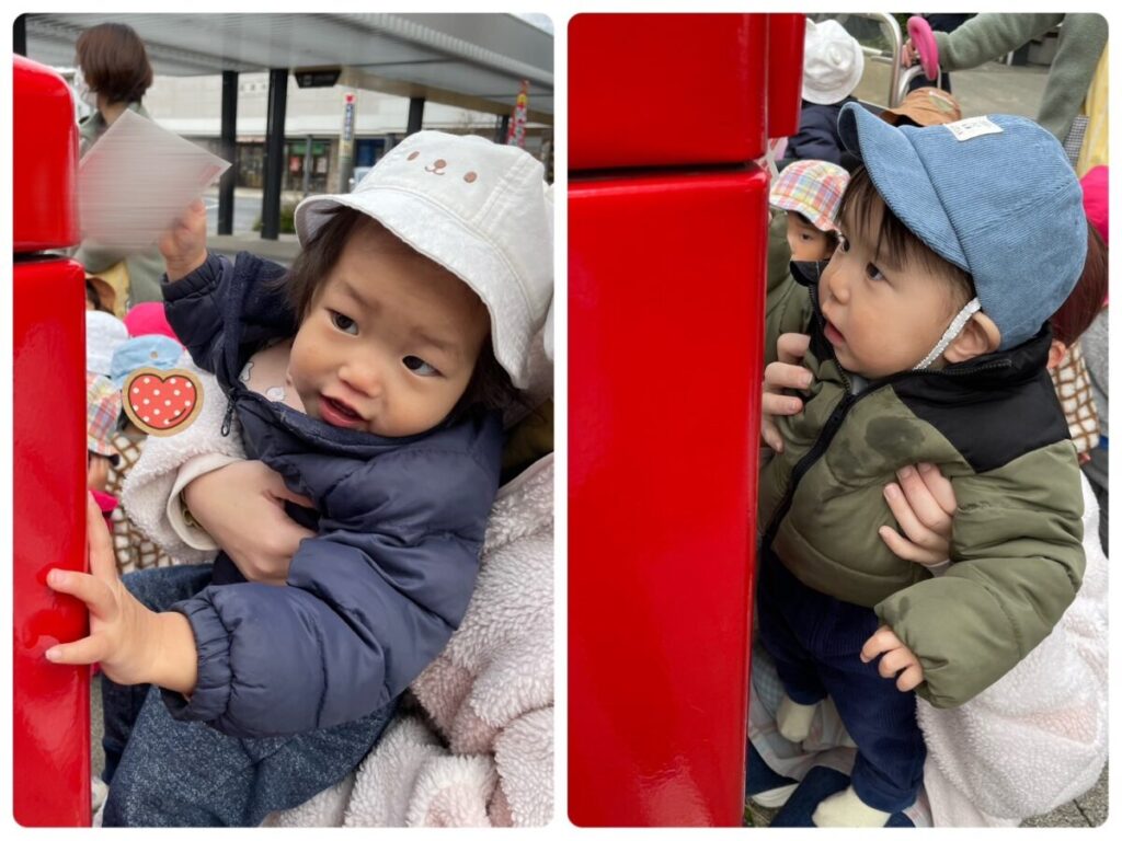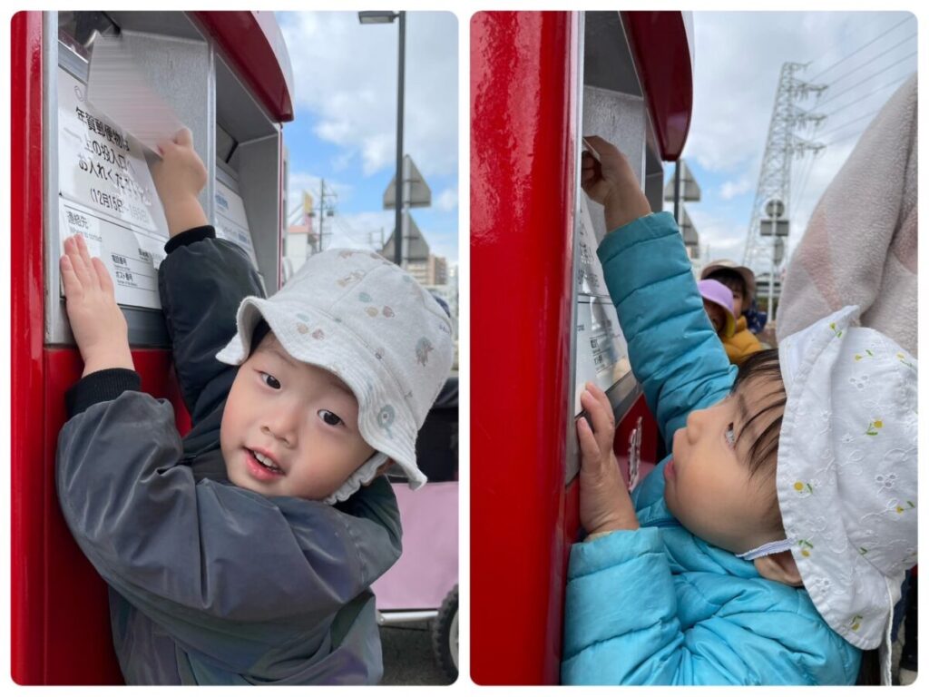 高蔵寺園 2025年12月23日 ポストに行ってきました📮 今日はみんなで駅南にあるポストまで 行ってきました📮 子ども達が製作した年賀状を 投函してきました😄 元日にはお家に届くと思うので 楽しみにしていてくださいね🐎