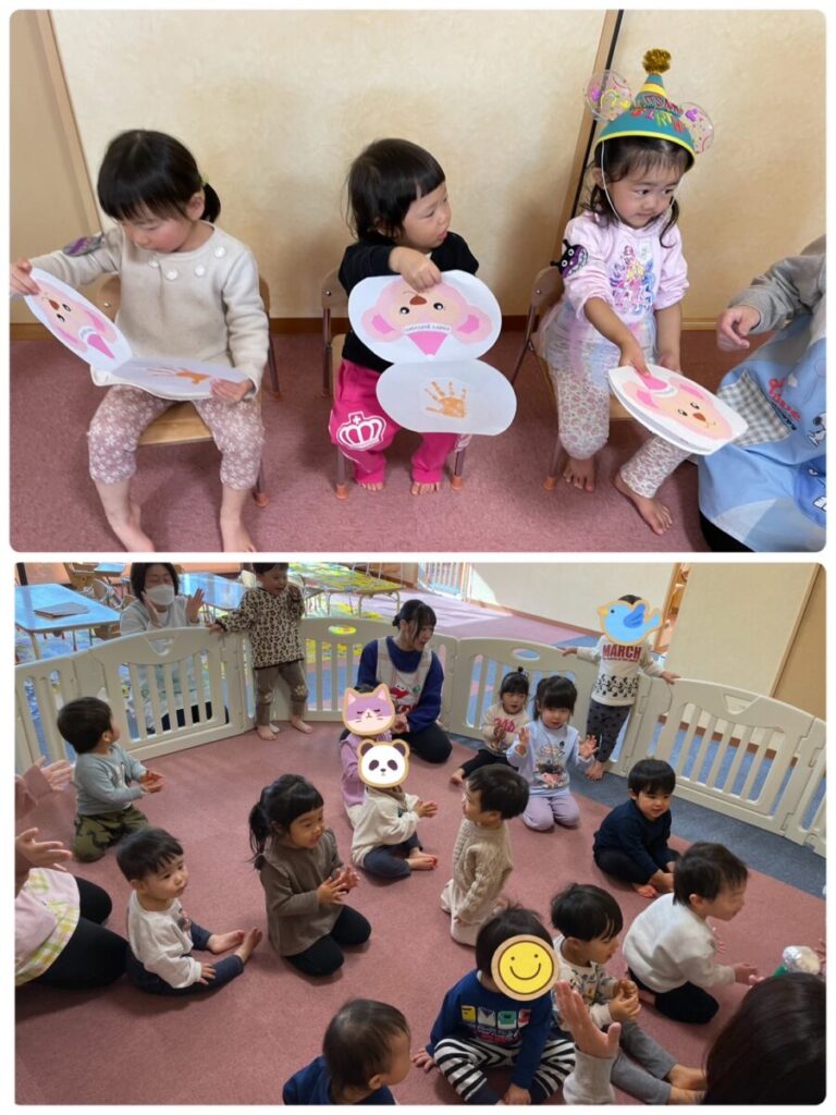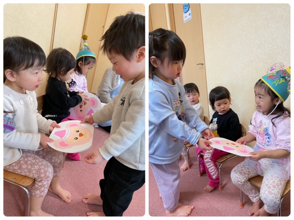 高蔵寺園 2026年01月16日 1月のお誕生会🥳 今日は1月生まれのお友達の お誕生会でした🥳 お名前を聞かれたり、何歳になったかを 聞かれてもみんな元気に 答えることができました😄 お友達からプレゼントをもらって とっても嬉しそうでした🎁 たくさん遊んでたくさん食べて 元気に大きくなってね😊 お誕生日おめでとう🎂🎊