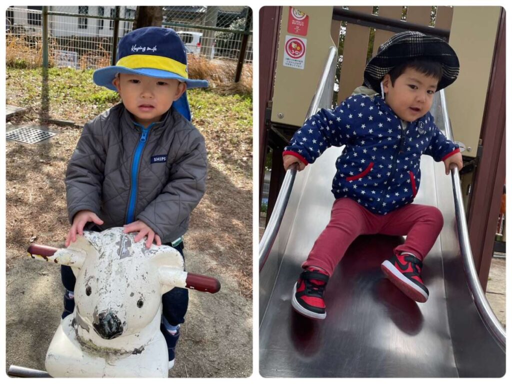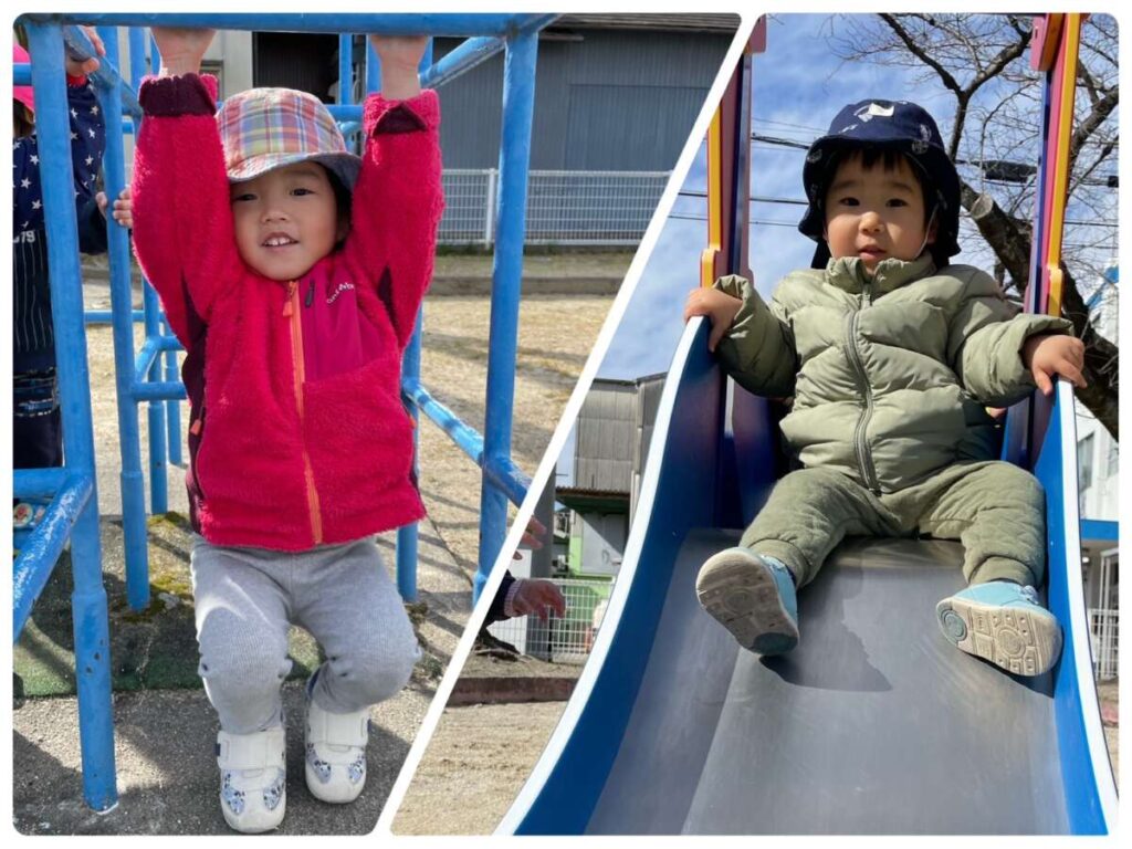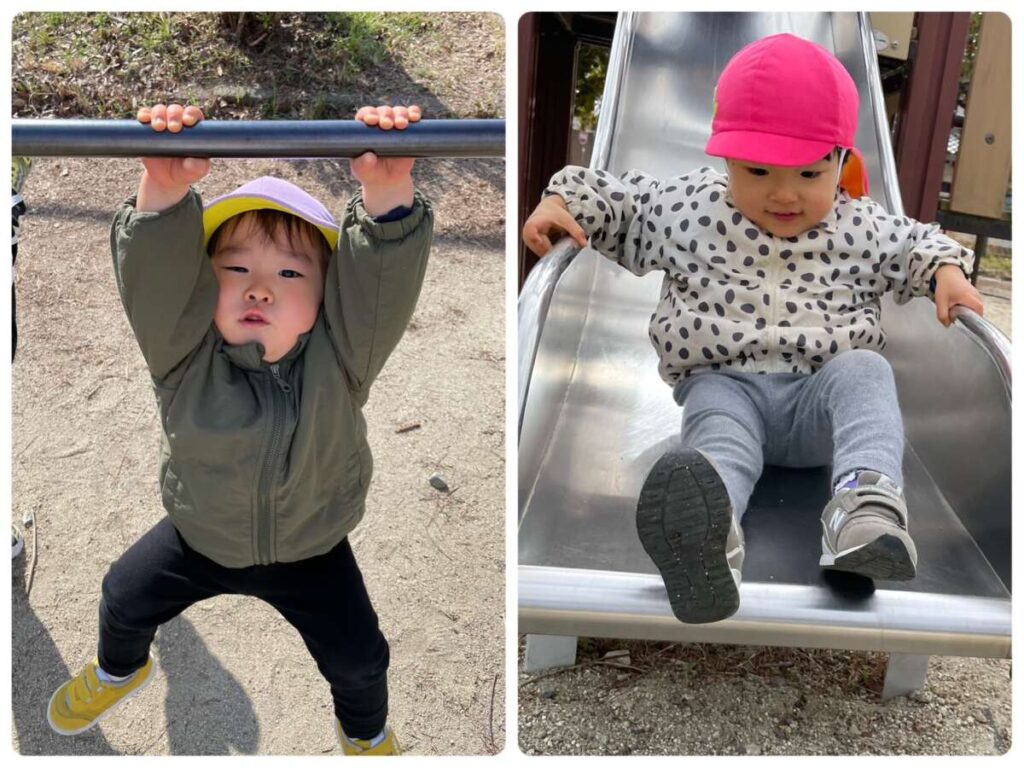すべり台したり、鉄棒したり