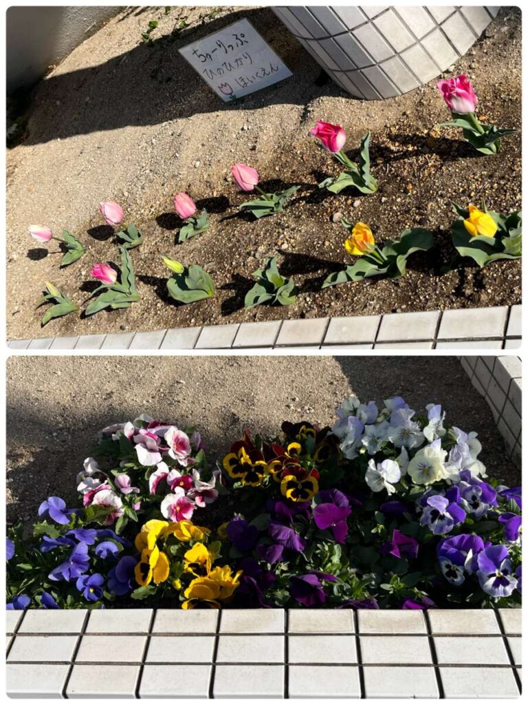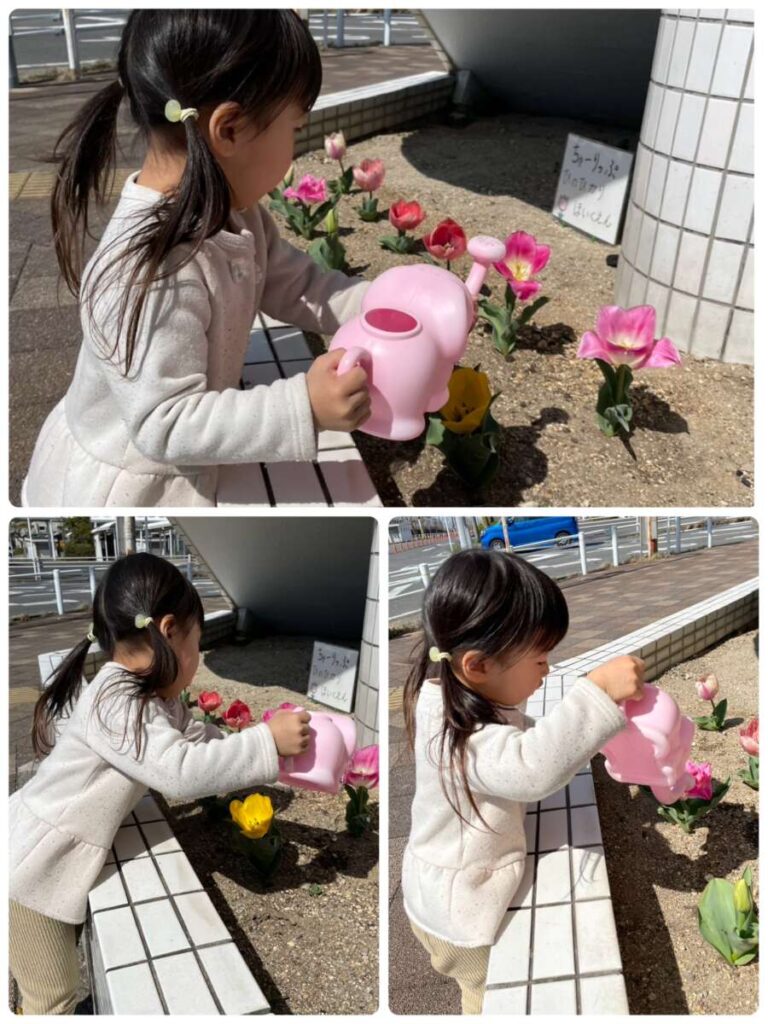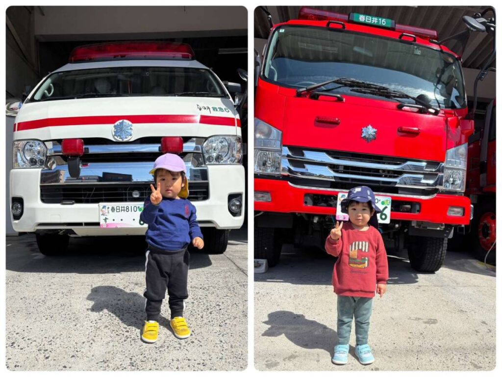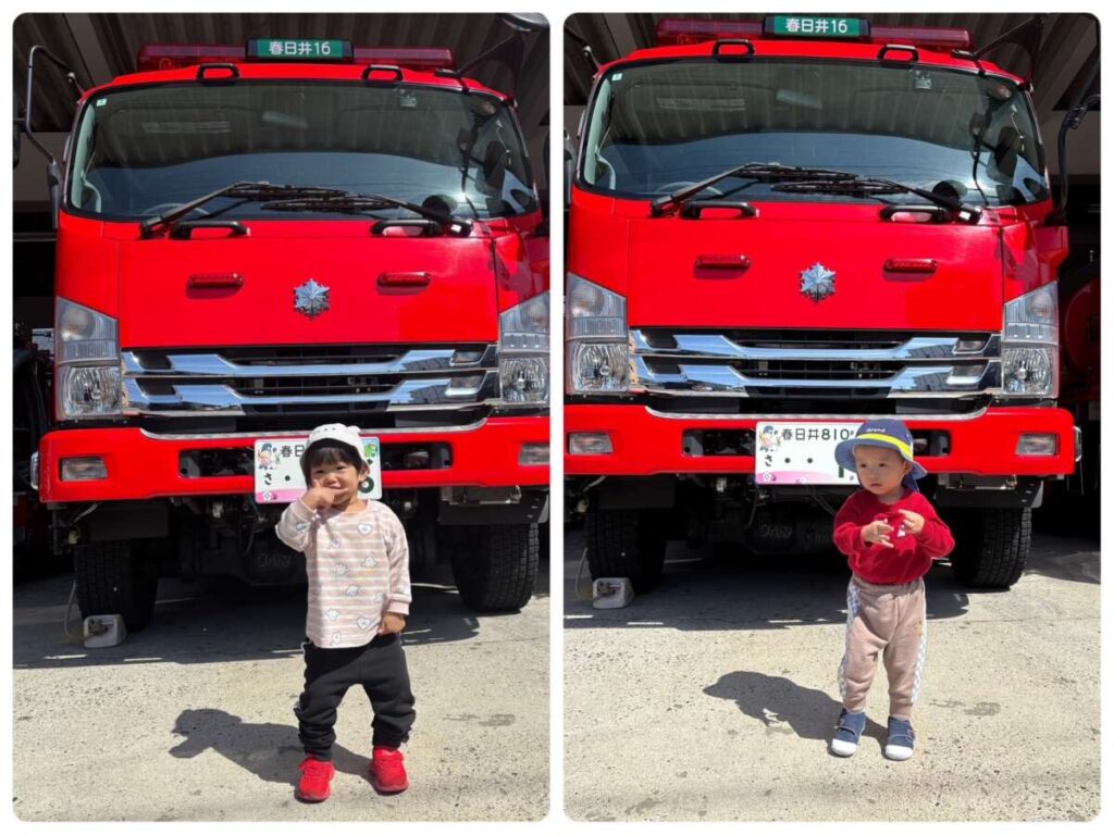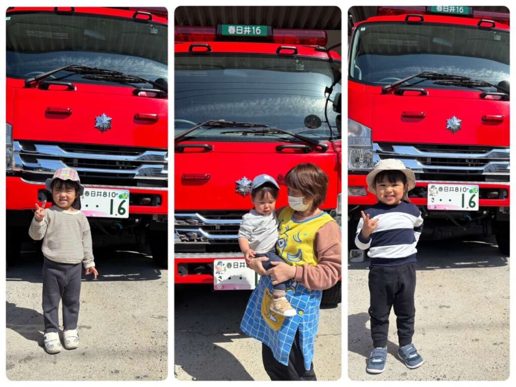 高蔵寺園 2026年03月24日 春ですね🌷 いちごぐみさんが育てているお花たち あたたかくなって たくさん咲いています🌷 今日のお当番さん😊 そしていちごぐみさん おままごとをして遊んでいます🔪 大きいももぐみさんも一緒です🍲 「かして~。」「いいよ~。」が 聞こえてきます😊 小さいももぐみさんは 消防署までお散歩です🚒🚑 消防車か救急車を 自分で選んで「ハイ!ポーズ!」 みんなかわいいです😊