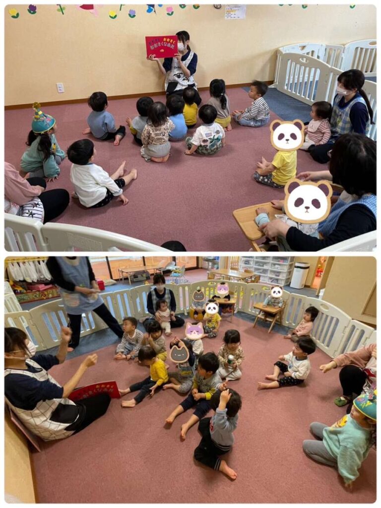 高蔵寺園 2026年04月24日 今週ももりもりで楽しく😄 今日は4月生まれのお友達の お誕生会でした😄 お誕生日おめでとう🎊 水曜日は、宮前公園で たくさん遊んできました😀 いちごぐみさん 月刊絵本を読んでいます📖 1ページずつ上手にめくれるかな? 気温の変化に、ちょっぴり 風邪気味のお友達がいますが 早く元気になって 来週の月曜日には元気に登園してくださいね😊