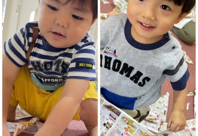 今日は、ポツポツ雨が 降っていたので お部屋の中で遊びました🙂 いちごぐみさんは 車や電車を出して みんなで走らせて 遊びました🚗🚃 ももぐみさんは 新聞ビリビリをして 遊びました😀 … ...続きを見る