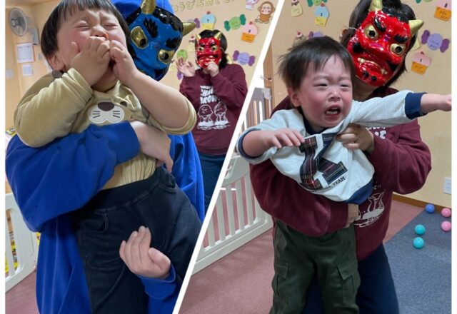 今日は節分👹 今年も保育園に鬼がやってきました👹 全身青い青鬼さんと かわいいチャーリーの 赤いトレーナーを着た赤鬼さん(笑) どんなかっこうをしていても やっぱり怖い子ども達😢 抱っこしても大泣きでした😭 … ...続きを見る