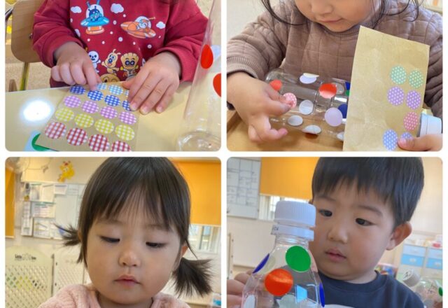 今日のももぐみさんは、 お家から持ってきていただいた ペットボトルに ペタペタシールを貼っています😊 台紙から自分ではずして 貼っています! さてさていちごぐみさんは、 学年がひとつ大きいので ペンで… ...続きを見る