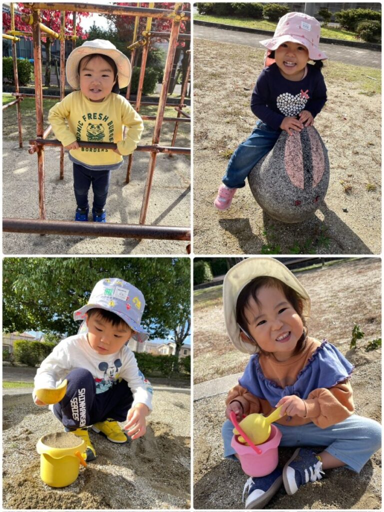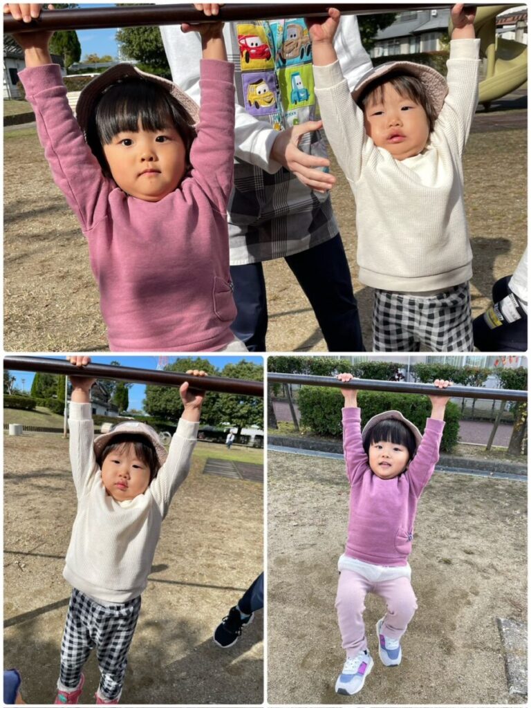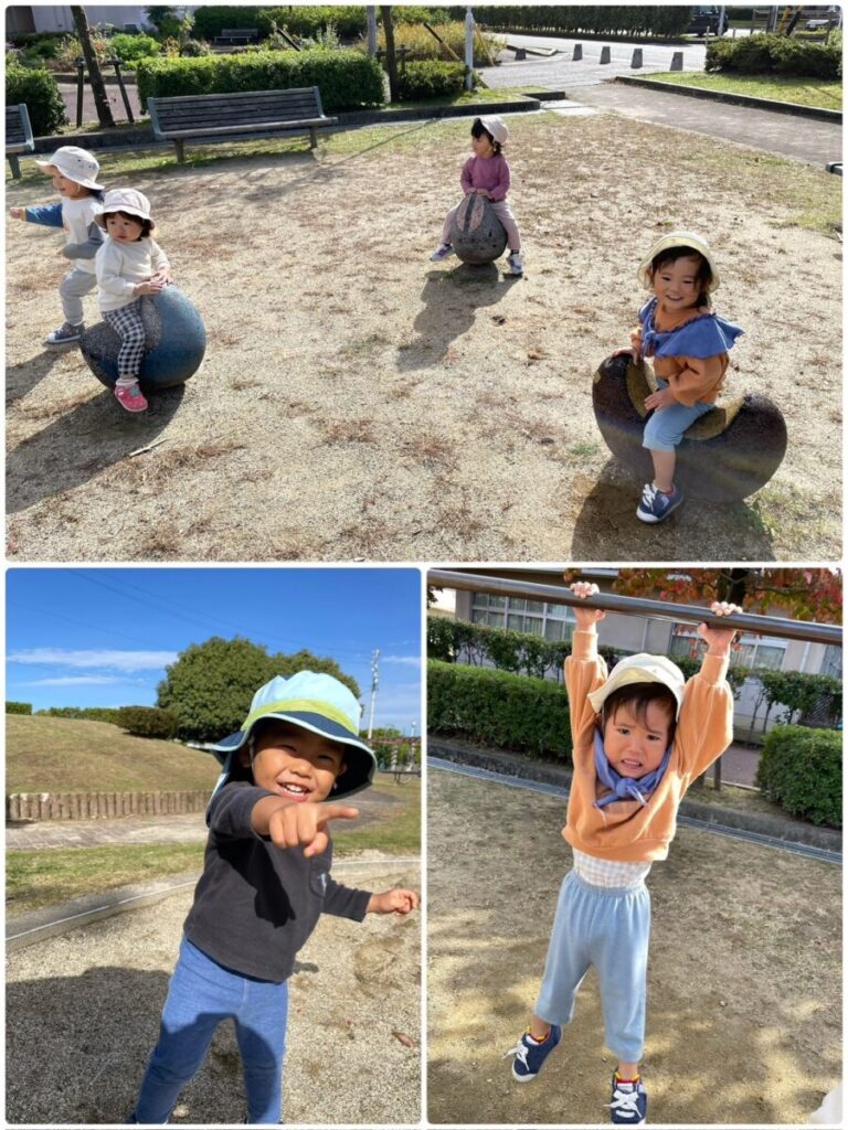 出川園 2025年11月11日 公園🤗 みんなで公園に行ってきました😄 昨日は、なんとなく胃腸風邪が 流行りだしてる???と、 心配していましたが、 なんとか万全ではないものの みんなで公園に行ってくることができました😊 鉄棒にぶら下がっている時の顔が 真剣でかわいいです🤭 これから寒くなり インフルエンザ(愛知県内、インフルエンザ注意報発令中)や 胃腸風邪も多く聞かれるようになってきます。 体調管理をして 体調が悪そうなときは、 早めの休息と早めの受診で 元気にこの冬を乗り切りたいです!