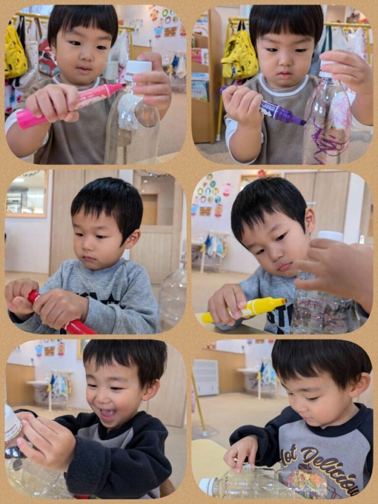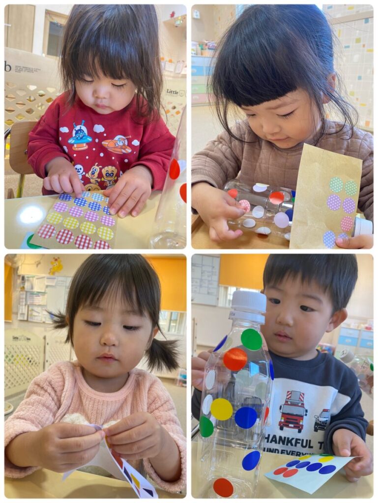 出川園 2025年12月09日 製作いっぱい 今日のももぐみさんは、 お家から持ってきていただいた ペットボトルに ペタペタシールを貼っています😊 台紙から自分ではずして 貼っています! さてさていちごぐみさんは、 学年がひとつ大きいので ペンでお絵描きをしています😊 なかなか真剣な顔や 笑顔も見られて 表情豊かですね😄 なんと!!! 今年のいちごぐみさんが育てた夏野菜の 収穫数です🍅🍆🥒 たくさん収穫して みんなで美味しくいただきました😋