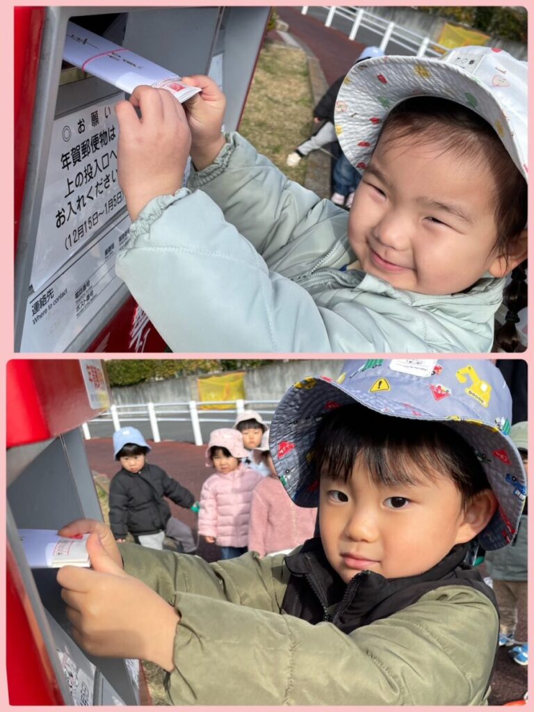 出川園 2025年12月19日 ポスト投函📮 昨日はこんな風に 絵本を見てみました📖 みんなおりこうさんです😊 今日はお散歩の途中に ポストによって 年賀状をお当番さんが代表で 投函してくれました😄 お正月にみんなのお家に届きます お楽しみに・・・🥰