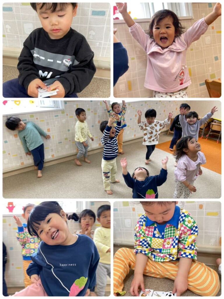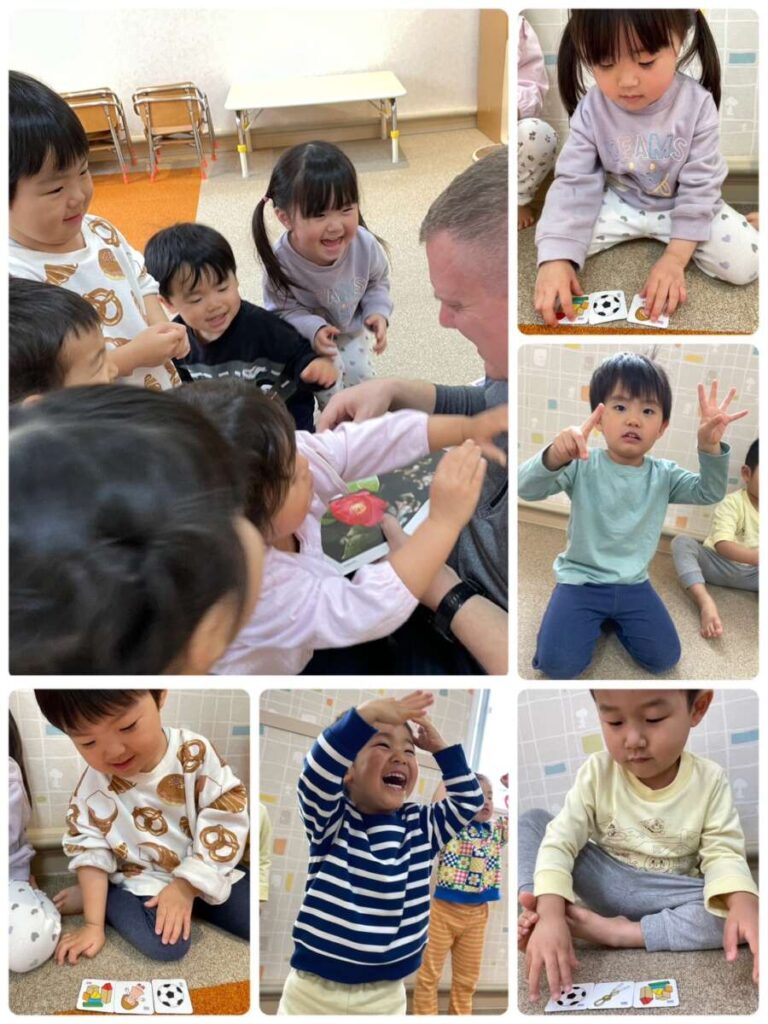 出川園 2026年02月27日 ECC英語教室🎵 「ハロー✋」 今日も元気にコーディ先生の ECC英語教室の始まりです😄 はい!ももぐみさん 楽しそうです🤩 いちごぐみさん 歌って踊って、カード遊びもして もりもりレッスンです😊