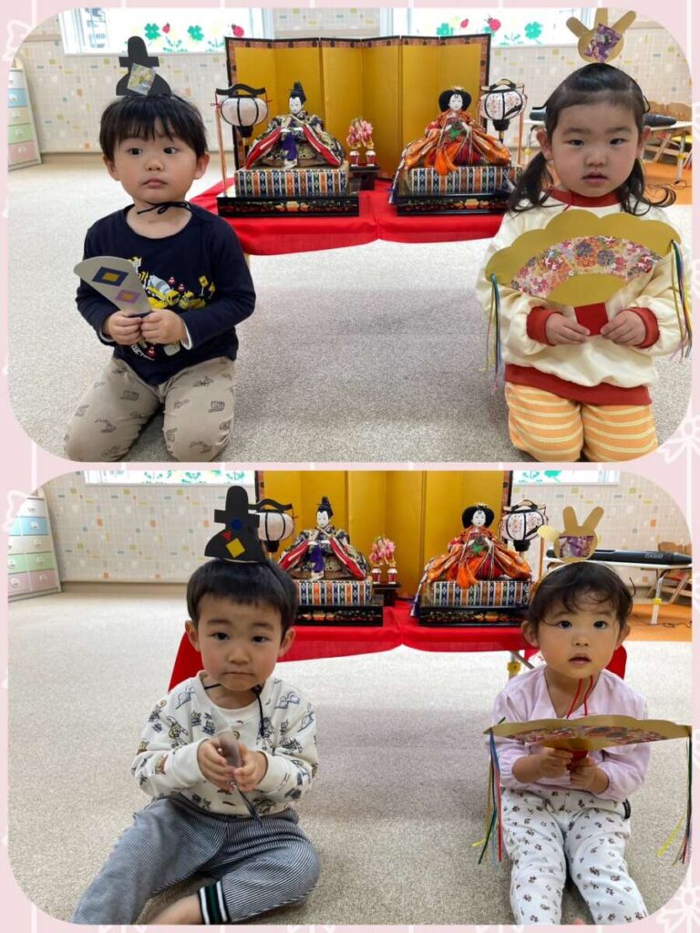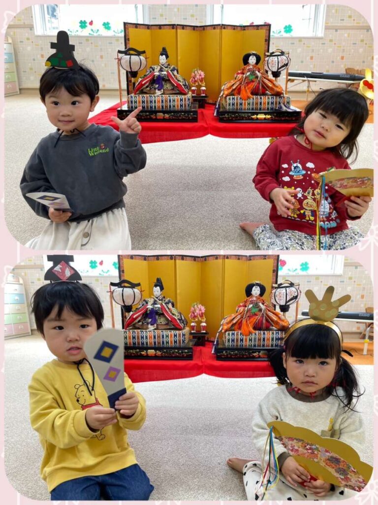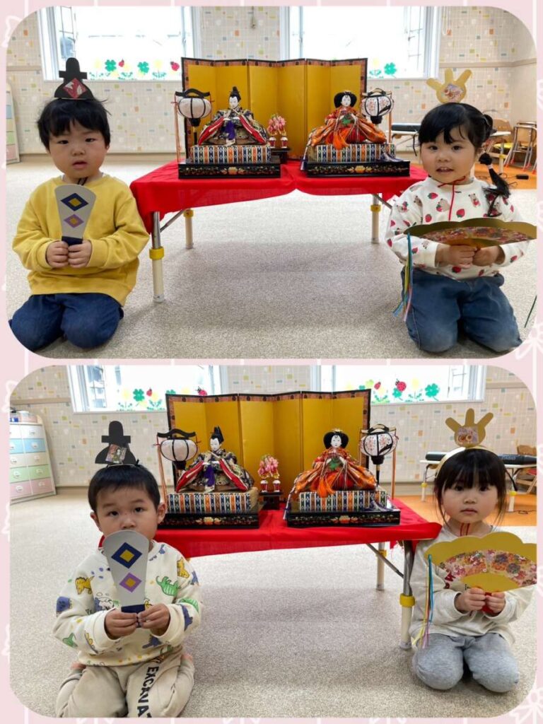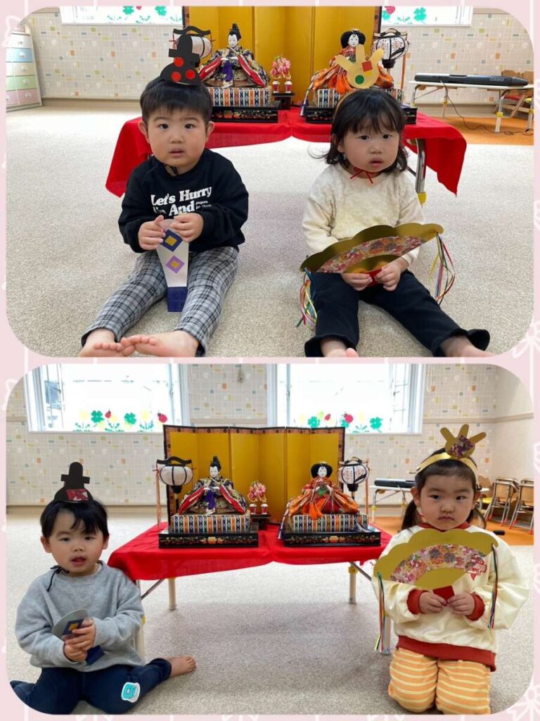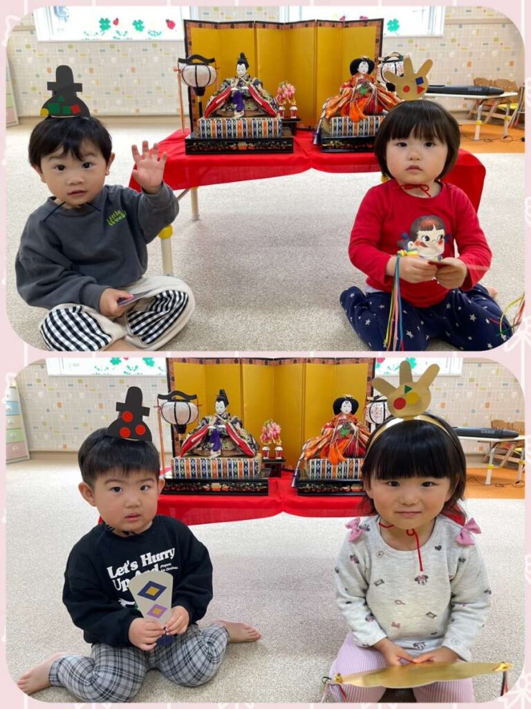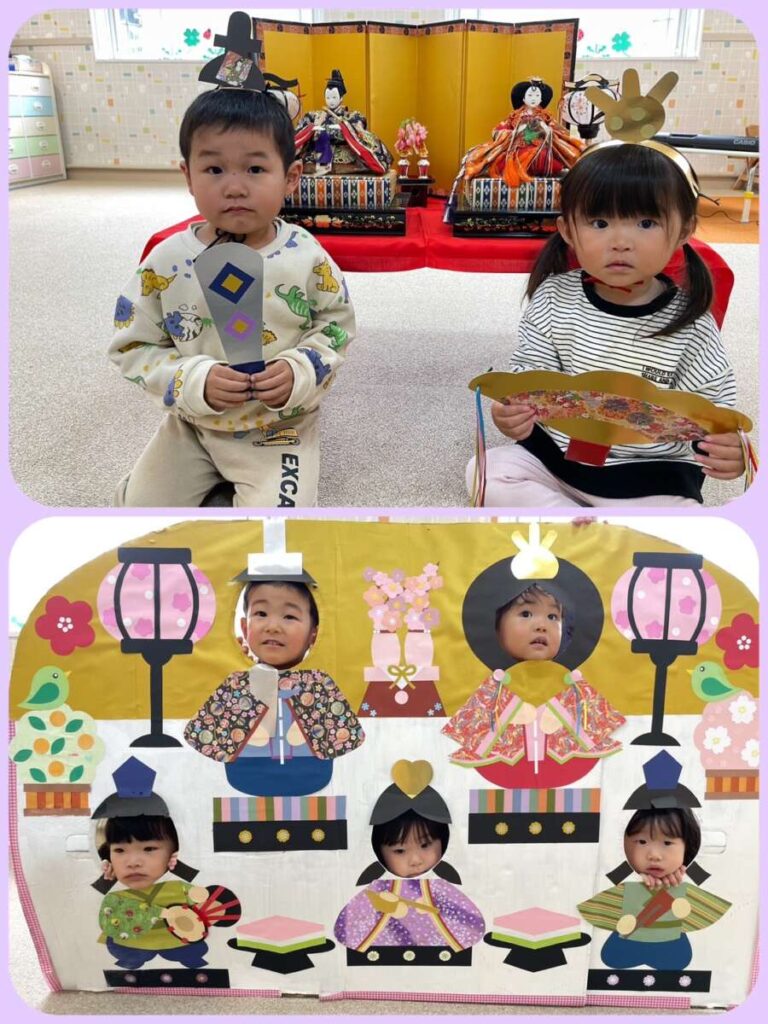 出川園 2026年03月03日 ひなまつり🎎 今日はひなまつり🎎 保育園でも、ひなまつり会をしました😊 クイズをしたり、歌の発表をしたり、 おひなさまと写真を撮ったり モリモリです😄 給食は、ひなまつりランチ😋 👆子ども達が作った かわいいおひなさま勢ぞろいです😊